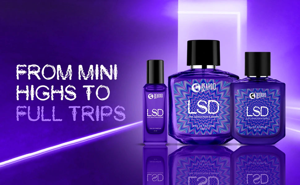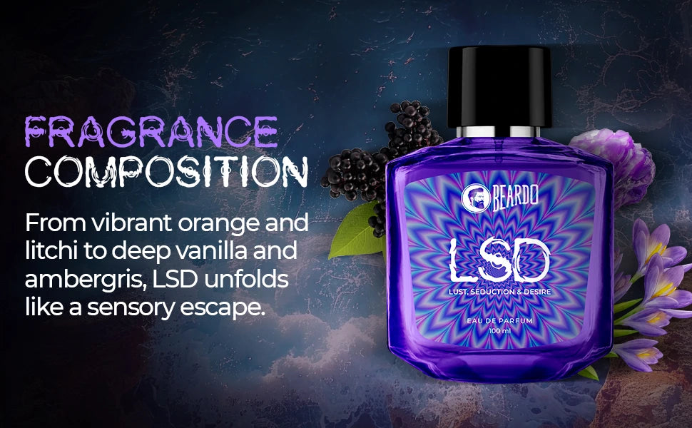 From zesty orange and juicy litchi to rich vanilla and warm ambergris, LSD evolves into an immersive, mind-bending scent journey.