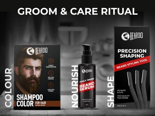 Colour, nourish, and shape your beard with Beardo’s Groom & Care Ritual. From natural black coverage to daily shine and precise shaping, everything your beard needs, done right.