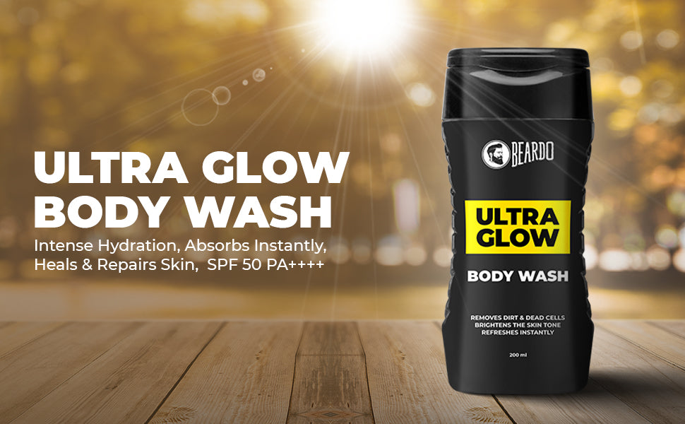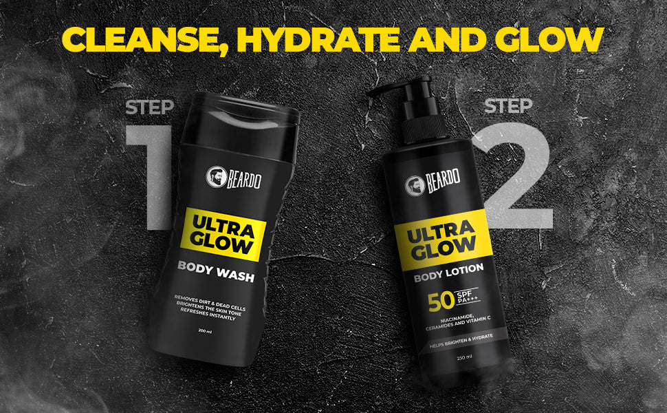 Beardo's Ultraglow range is designed specially for men's skin needs, for renewed glowing skin with every shower! Use the Ultraglow bodywash for deep cleansing of the skin to make it glow from within. Level up with the Ultraglow body lotion for softer, smoother skin in every season.